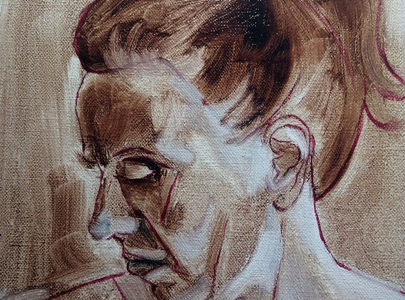 The Self Portrait is always a difficult subject for me. When I paint a person I get to know their features inside out, the dint in their nose, the angle the mouth sits etc. Having to closely examine yourself is a bit unnerving, seeing how much my face has aged and realizing its flaws, also seeing what everyone else sees how I express myself to others, how I communicate.